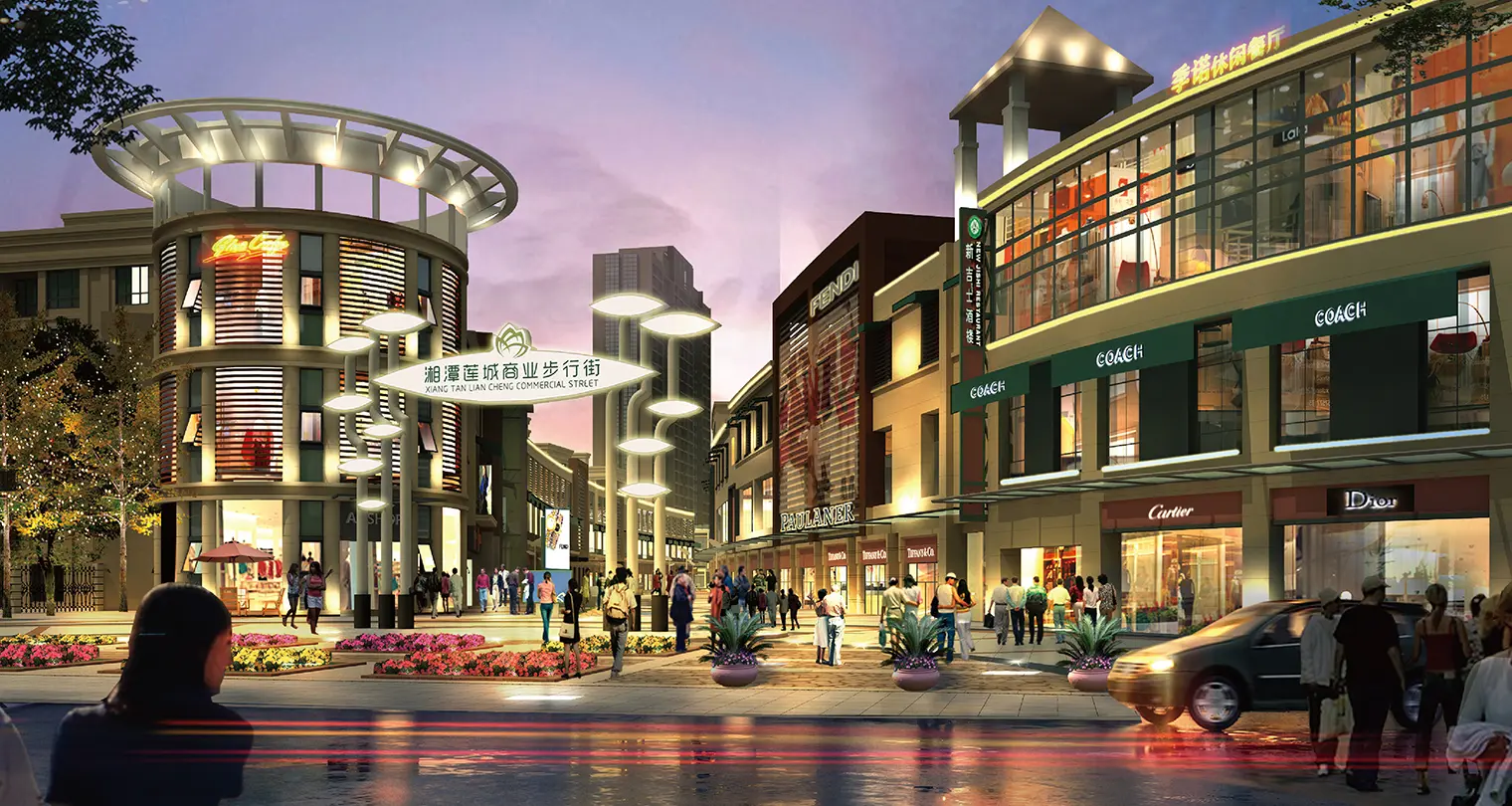 2016年,江大设计传播机构受邀为湖南湘潭莲城步行街进行品牌形象改造升级。江大通过“风情化”视觉元素的融入改造,重塑一、二期街区的品牌识别,强化街区的时代感和去为体验,从而实现整体街区品牌形象的全面提升。