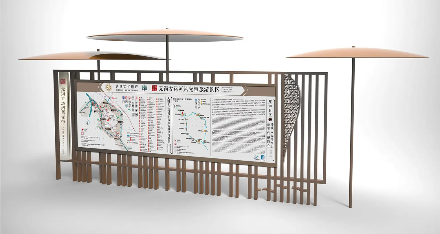 江苏省无锡市古运河风光带景区环境视觉与导视系统规划设计项目是江大设计传播机构于2014年为无锡市城市投资发展总公司服务的项目。作为环城古运河风貌带综合整治工程的重要内容之一,江大设计传播机构提出“韵河围城”大创意,使古运河风光带周边的景致实现有机统一。