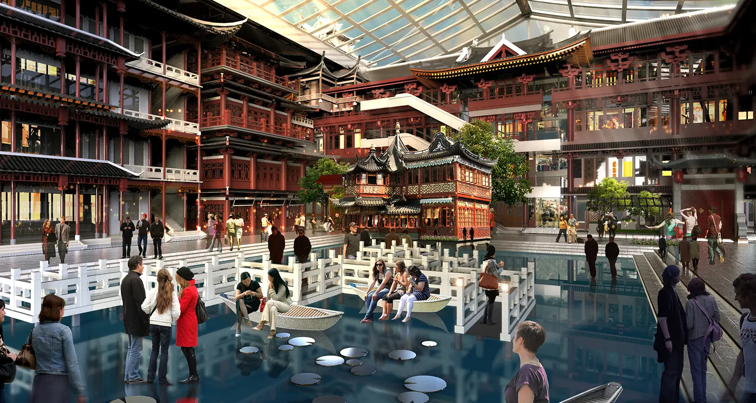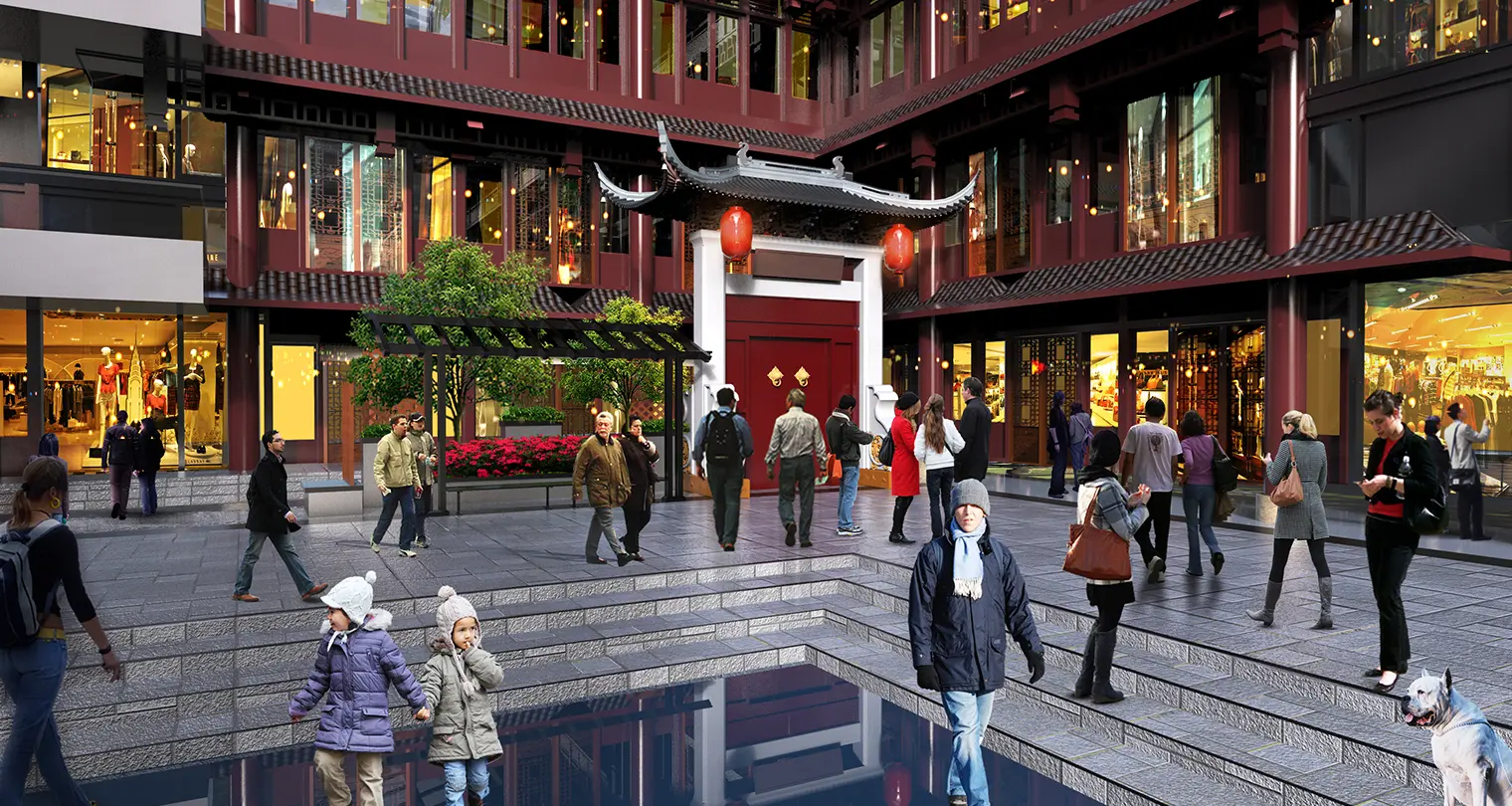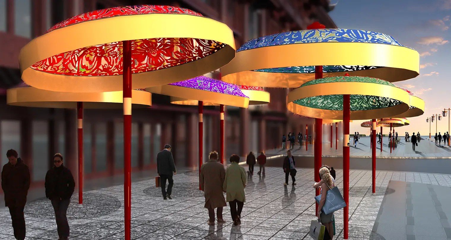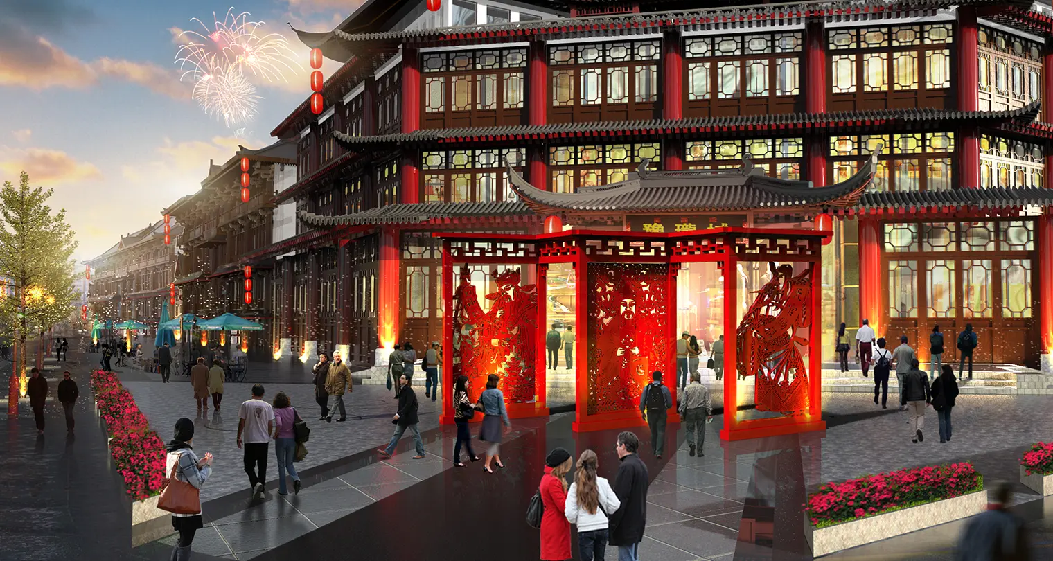 “中街·豫珑城”项目是由沈阳豫园商城置业有限公司开发,母公司为上海豫园旅游商城股份有限公司。2015年,江大设计传播机构介入豫珑城美陈系统,针对沈阳城市背景和区域资源,提出“奉天承运”的概念,融入沈阳地缘文化要素之余,也创造性地为沈阳豫珑城及上海豫园提出“双城记”的商业互动模式。