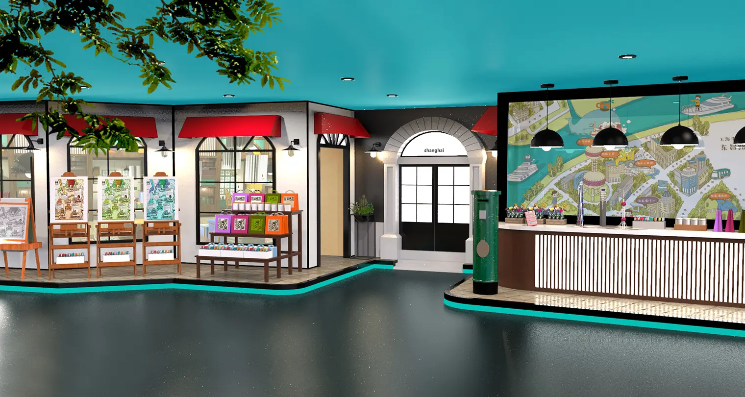 2016年,东方明珠内部商业空间进行调整,江大接受委托为其中的文创展示空间进行美陈创意设计。植根上海地缘文化,江大为空间创意主题——“阿拉的一天”。从“阿拉”的日常生活日记中设计游线,打造不同主题的沉浸式生活场景,据此布置延伸文创产品,形成具有体验度和趣味性的创意空间。